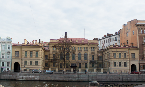 С 1945 года в Куйбышевском районе Ленинграда 214-я женская семилетняя школа присоединилась к 206-й мужской гимназии, заняв правое крыло огромного здания на набережной реки Фонтанки, 62 на десять послевоенных лет. Трехэтажное, занявшее целый квартал здание, было построено для Петровского коммерческого училища в 1883 году и  находилось под Августейшим покровительством Императорского дома Романовых.