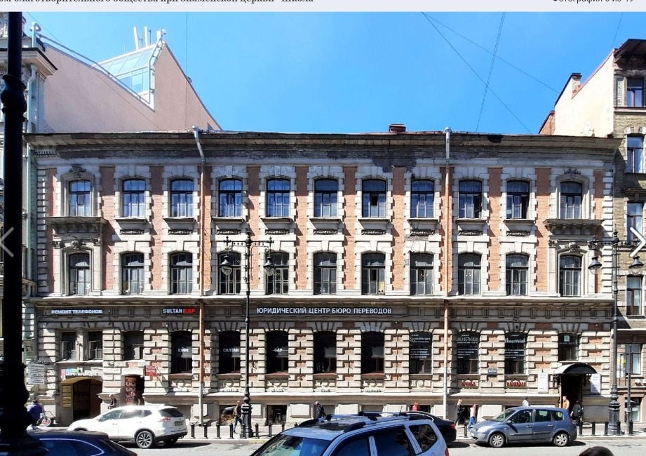 Первым (точнее, уже вторым в адресном списке для 214), был адрес по улице Восстания, дом 4. Там школа будет находится следующие десять лет. Четырехэтажный жилой был построен архитектором А.В.Ивановым в 1887 году по заказу благотворительного общества при Знаменской церкви. Вероятно дом с широкими окнами предназначался для образовательного учреждения.
