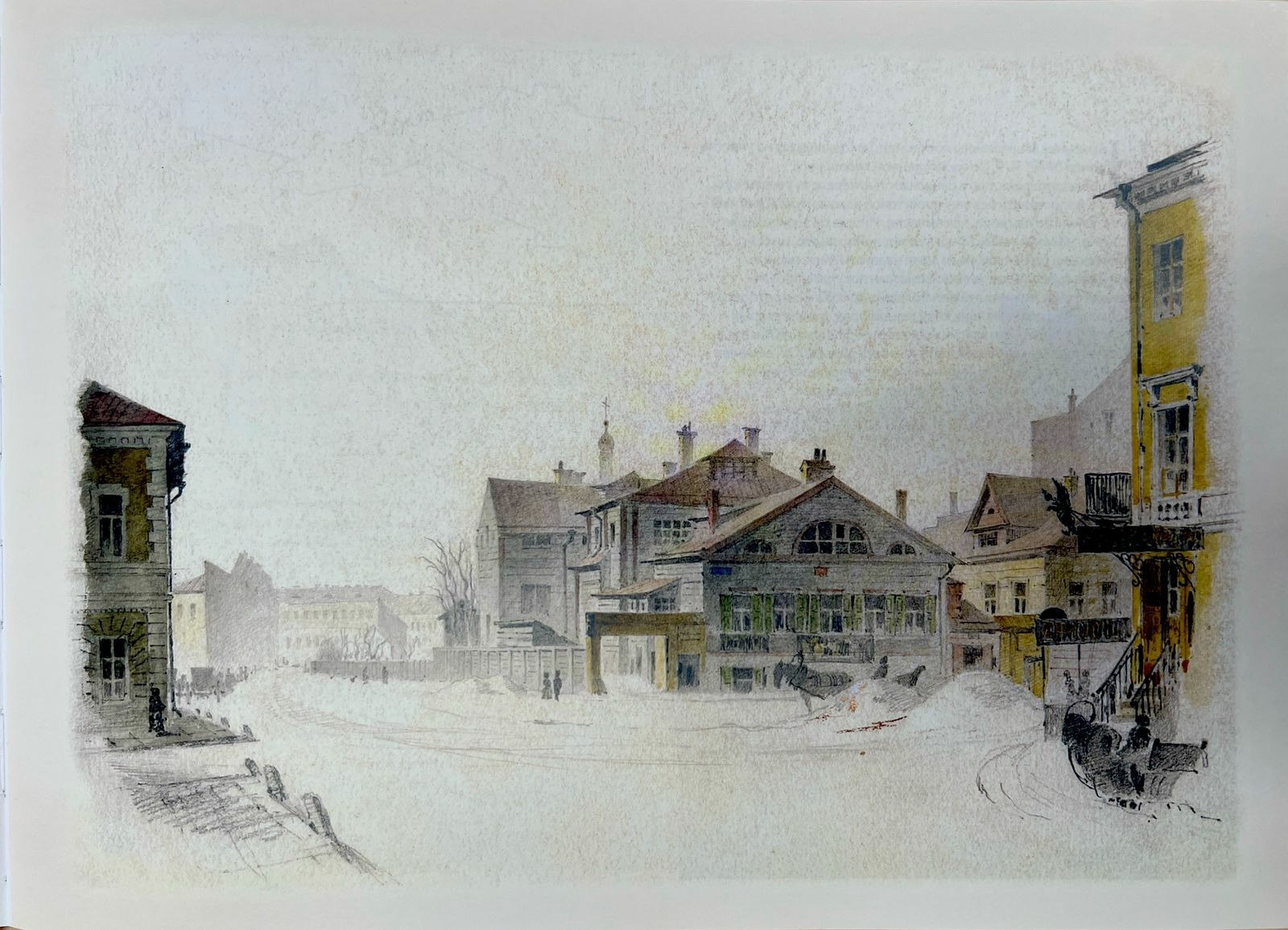 Ф.Ф. Баганц «Деревянный домъ (на углу Надеждинской и Итальянской  улицъ - 1862)»